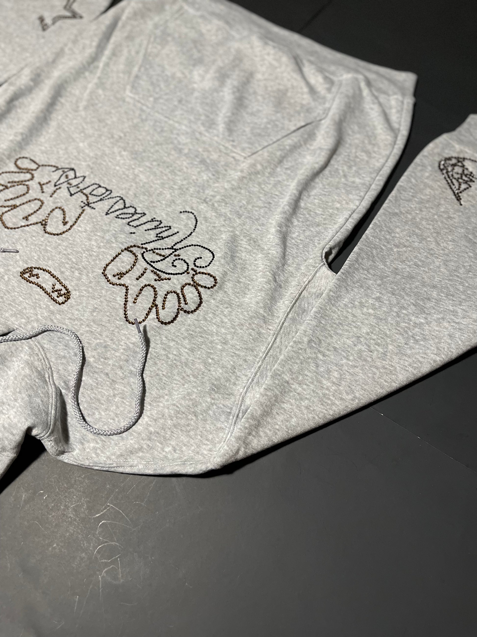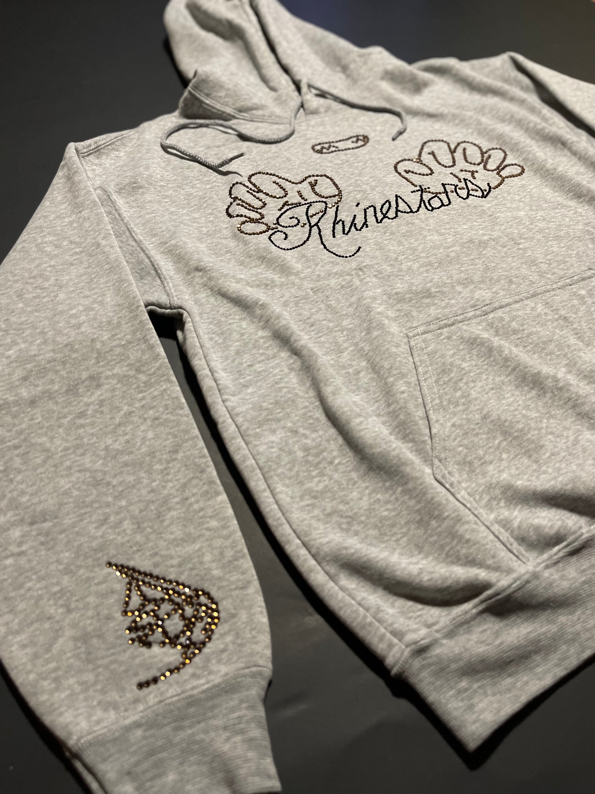 Pushing Rhinestars name Rhinestone hoodie(M)